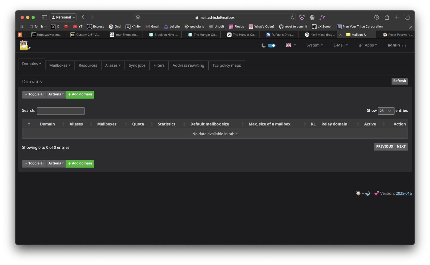 I just logged into my instance (after restoring it from a backup) and there appears to be no domains or mailboxes … so I’m even more confused
