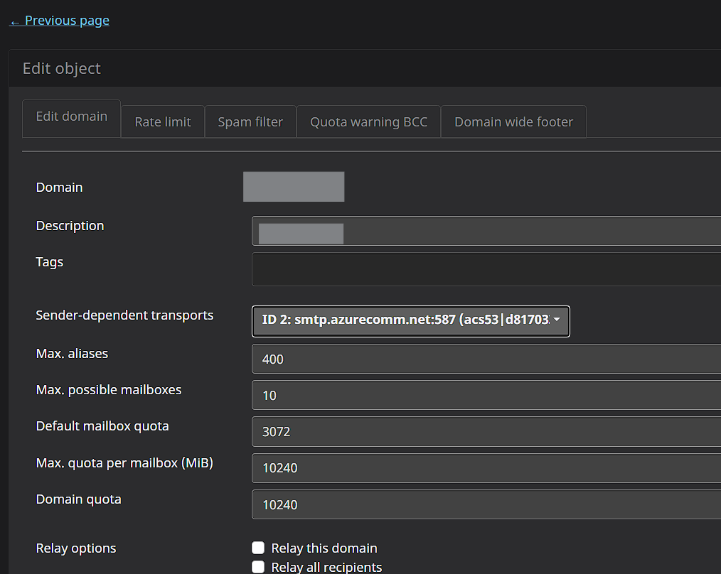 I have mailcow setup as an smtp relay, where different domains assigned different sender dependent transport.