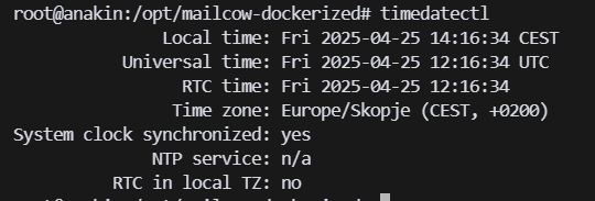 sojic Time on MailCow is 2 hours behind the real time eventhough the timezone is correct. The host is also configured correctly