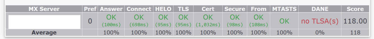 In beiden Fällen erhalte ich folgende Fehlermeldung: [001.819] TLSA–>25.tcp.mail.nicolaiwiehe.de unresolvable {DNSSEC}