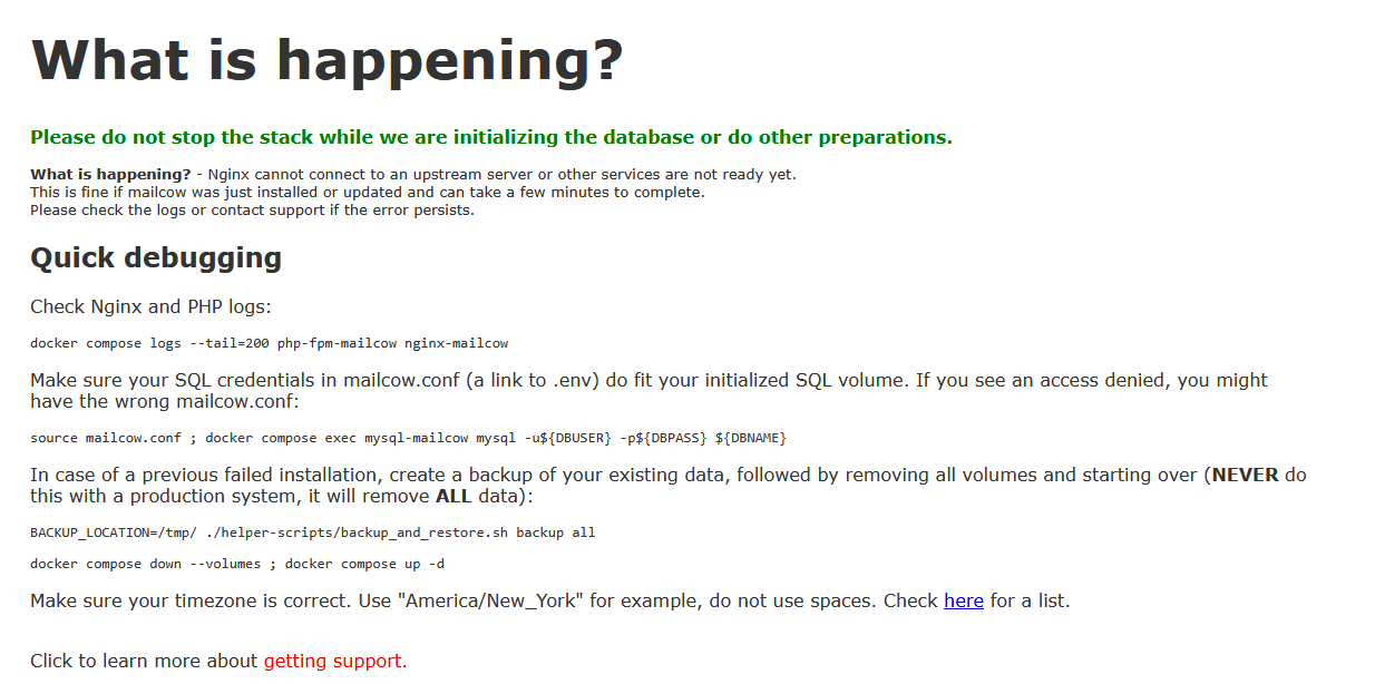docker compose logs –tail=200 php-fpm-mailcow nginx-mailcow
