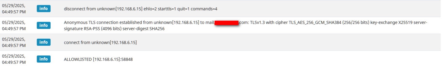 I want to send an email from another VM (192.168.6.15) on my local network via PHP script. It was working on Zimbra, but Mailcow blocks it for some reason