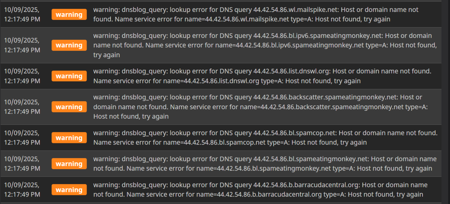 I see a lot of this in my logs I’m assuming it’s a DNS issue but DNS on the server is working